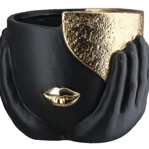 Bloempot Gezicht Vogue – Keramiek – Zwart/Goud – L15xB13,5xH12cm