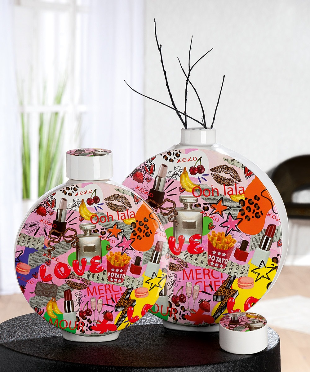 Pop Art Vaas met Deksel – Keramiek – Meerkleurig – L29xB7,5xH34,5cm