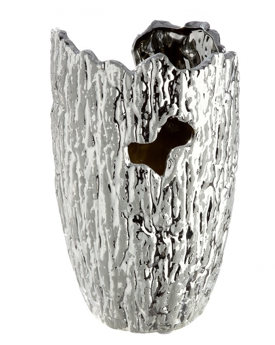 Vaas Crepa Structuur – Keramiek – Zilver – Ø14xH22cm