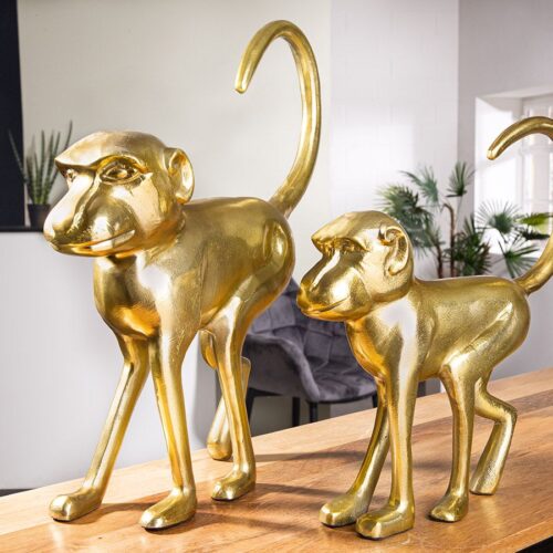 | Decoratieve Aapjes - Aluminium - Goud - Medium/Large | Medium: 30x8x34cm hoog, Large: 41x11x45cm |