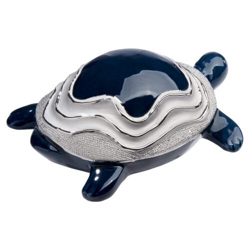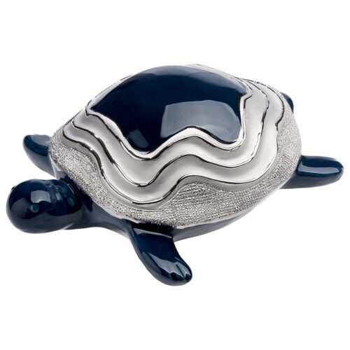 Schildpad Wavy – Glanzend/Structuur Keramiek – Donker Blauw/Zilver – L11,5xB13,5xH5,5cm