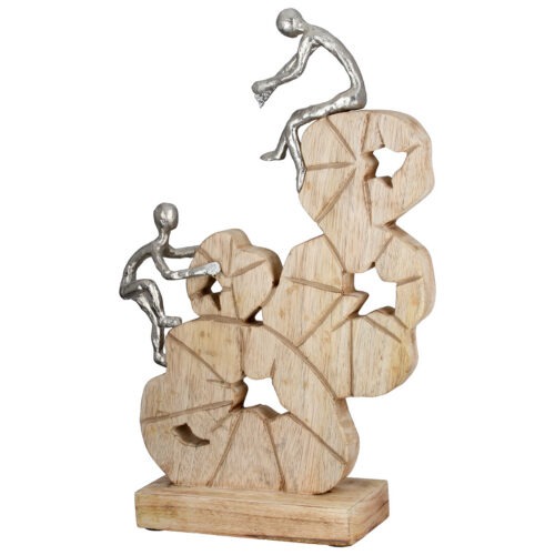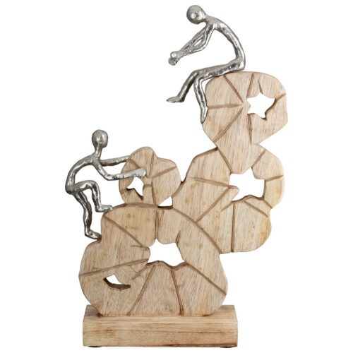 Sculptuur Naar de Top – Mangohout/Metaal – Naturel/Zilver – L29xB9xH45cm