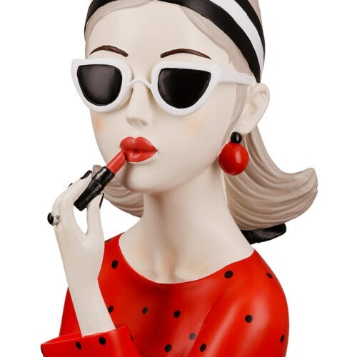Sculptuur Vrouw met Lipstick – Polyresin – Multi – L17xB17xH26cm