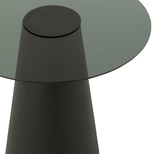 Bijzettafel Flat Cap Kegel – J-Line – Glas/Metaal – Zwart – Ø60xH50cm