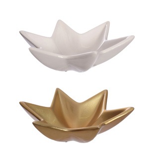 Schaal Ster – Keramiek – Wit/Goud – Set van 2 – 29x9cm