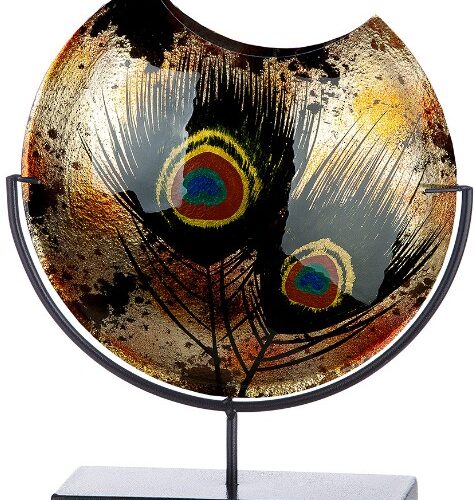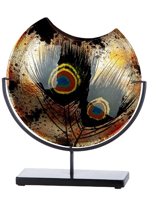 Vaas Peacock op Voet – Glas – Zwart/Bruin/Goud – L32xB9xH37cm