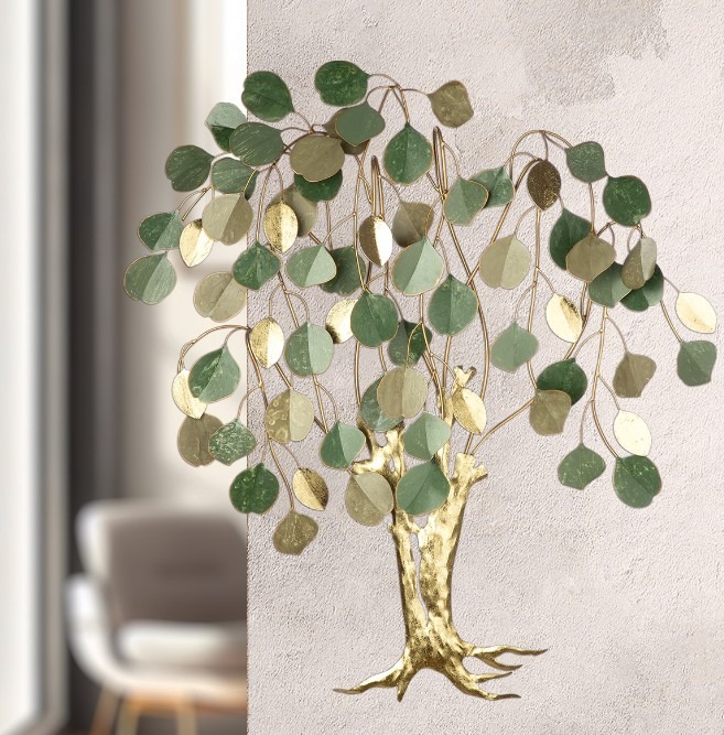 Breng een vleugje natuur en luxe samen met de Wanddecoratie Gouden Eik. Het verfijnde metalen ontwerp met een goud-groene metallic look vangt het licht op een elegante manier en geeft je muur direct diepte en karakter. De gestileerde eik staat symbool voor kracht en rust, perfect voor wie een warme, stijlvolle sfeer in huis wil creëren. Een echte blikvanger voor zowel moderne als landelijke interieurs. Inclusief ophangsysteem