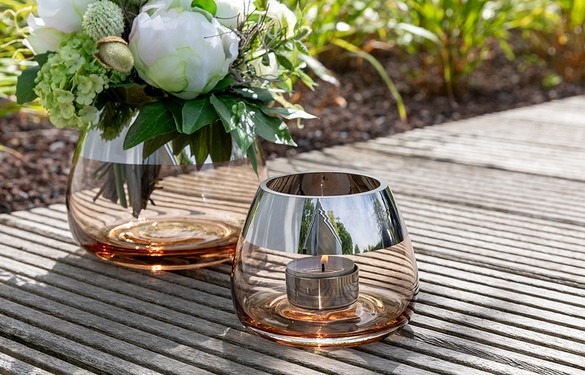 Theelichthouder Bella – Mondgeblazen Glas – Zand/Zilver – Ø11xH8,5cm
