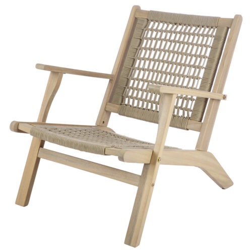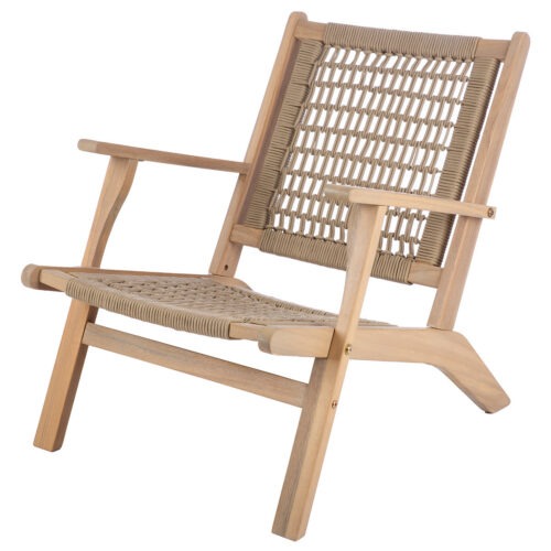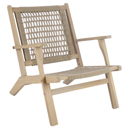 Stoel Bali met Armleuning – Hout/Polyester/Polyrope Koord – Naturel – B76xL60xH73cm